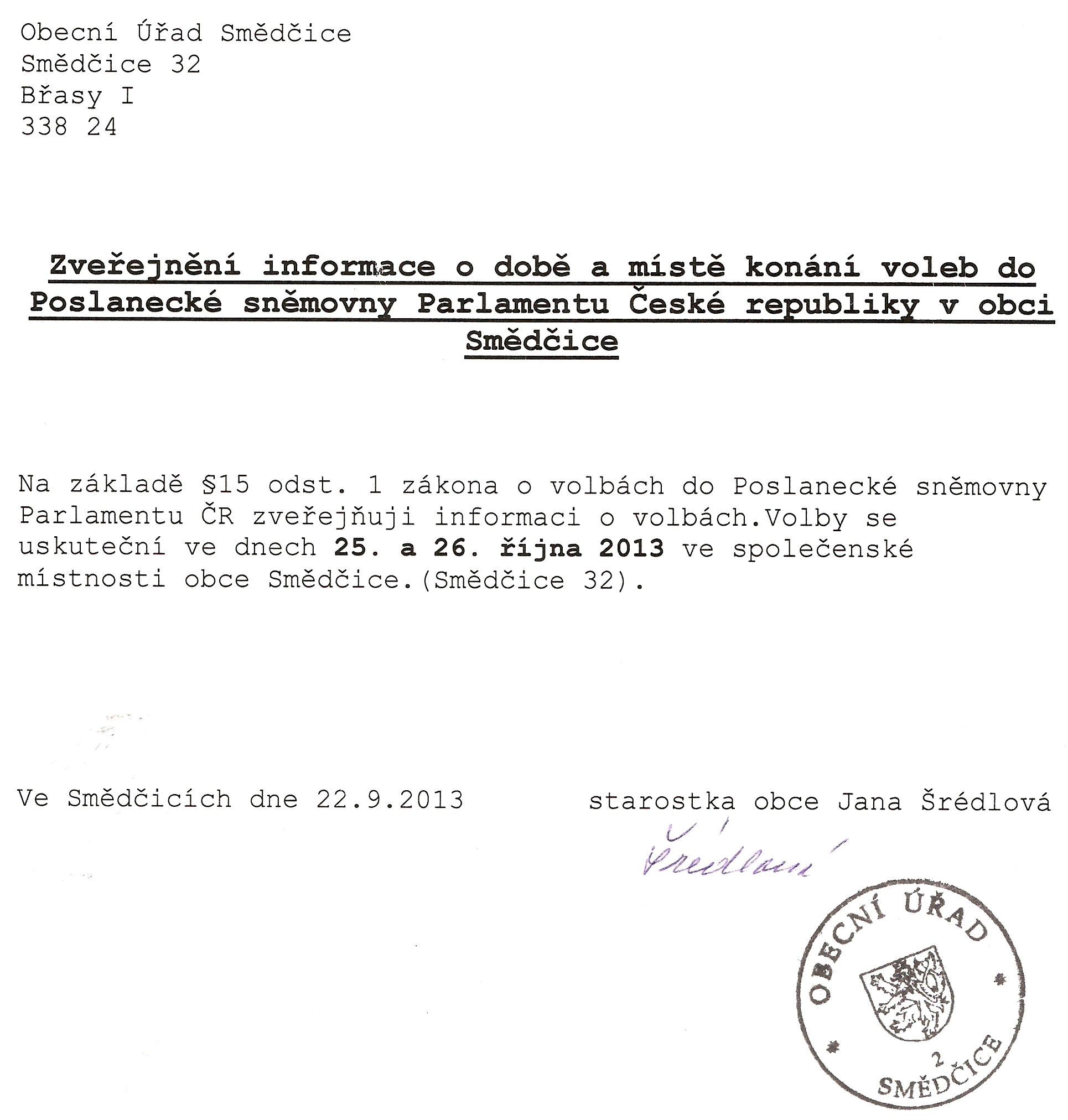 Vyvěšeno na úřední desce dne 23.09.2013