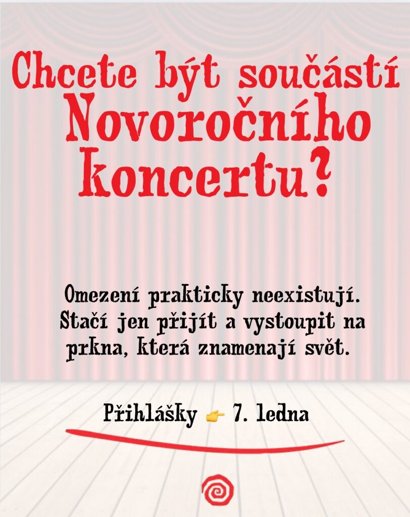 V neděli 11. ledna 2026 v 15:00 se v Obecním domě uskuteční tradiční ”Novoroční koncert“. Máte chuť se zúčastnit? Omezení prakticky neexistují. Stačí jen přijít a vystoupit na pódium. Můžete sami, s kamarádem, s dospělákem. Žánr není určený a umění není jen o hudbě. Pokud máte chuť zarecitovat báseň nebo zatančit, neváhejte, i taková vystoupení do programu patří.